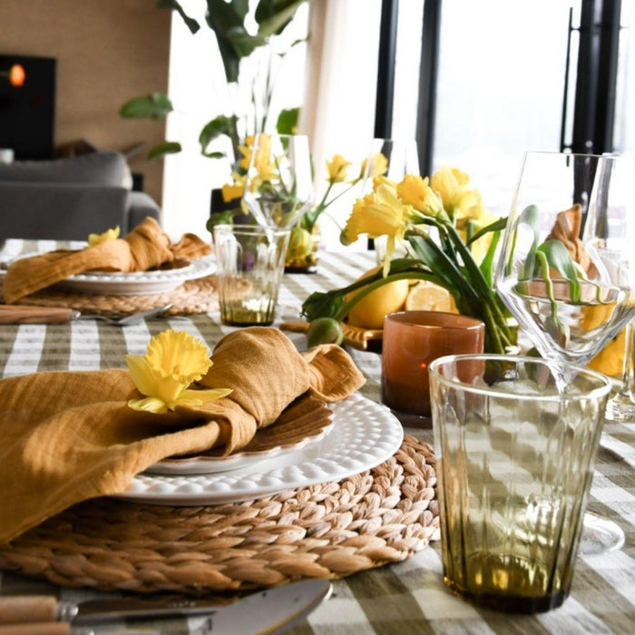 Maak kennis met het Tafelkleed Bourdon Canvas Mimi Vichy - Vichy Kaki Bourdon Noir 145x350cm, een prachtig tafelkleed uit Frankrijk dat zeker een vleugje elegantie toevoegt aan elke omgeving. Dit prachtige tafelkleed is gemaakt van een 52% linnen en 48% katoenmix, en is geweven met tweekleurig geverfd garen om zijn unieke look te creëren. Het tafelkleed heeft een prachtig kaki motief met zwart rand, dat een vleugje Franse flair toevoegt aan dit toch al schitterende tafelkleed. Of je nu een etentje organiseert of gewoon een vleugje luxe aan je dagelijkse eetervaring wilt toevoegen, het tafelkleed Bourdon Canvas Mimi Vichy is het perfecte tafelkleed voor elke gelegenheid.